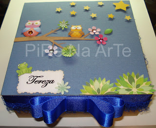 Escolhi decorar as caixas com "Corujinhas", pois, além de serem o tema do momento, representam a sabedoria e combinam direitinho com o curso de Biologia, cuja cor símbolo é a azul, por isso a sua predominância na decoração das caixas.